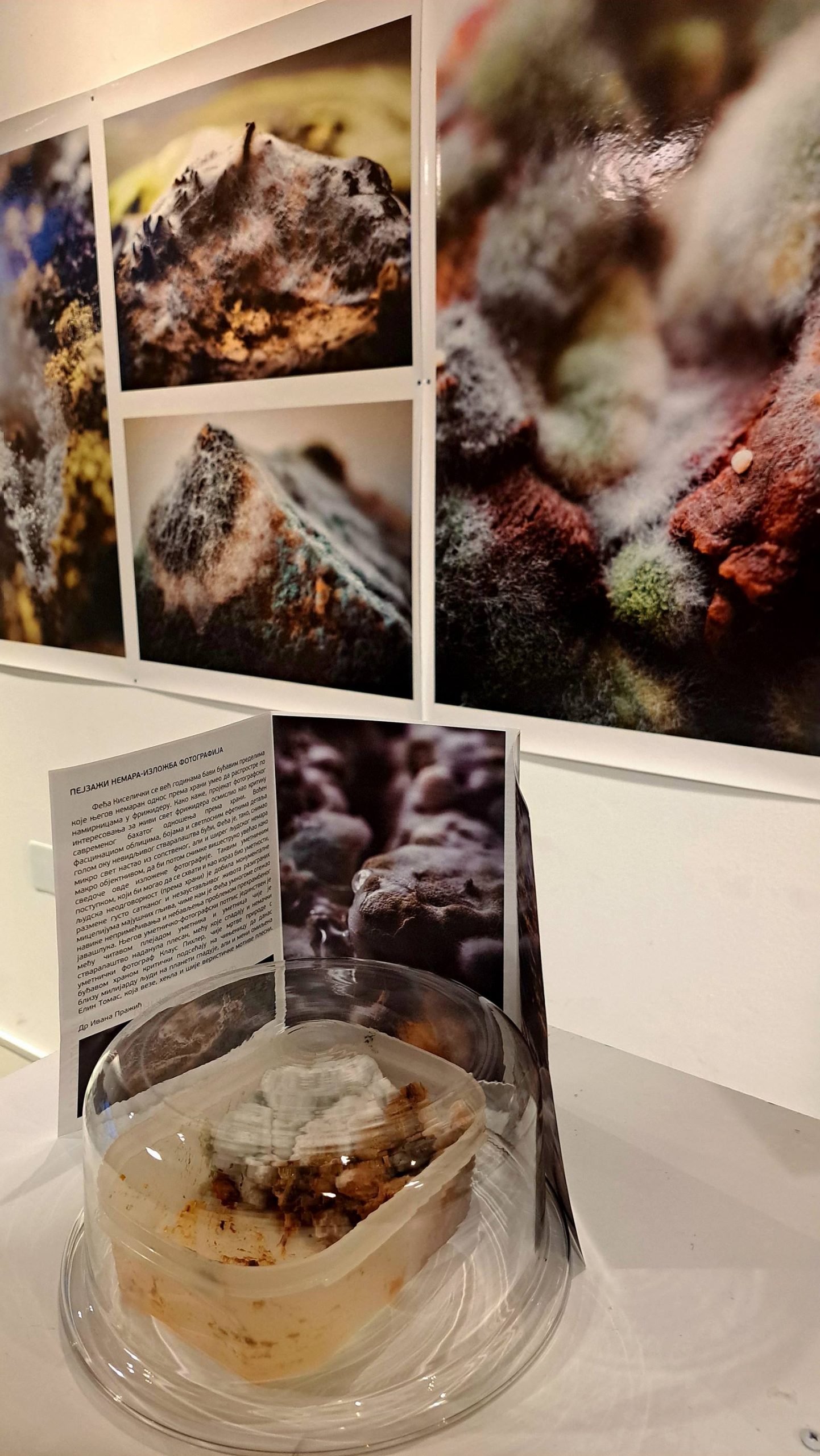 Феђа Киселички се, већ годинама бави буђавим пределима које његов немаран однос према храни умео да распростре по намирницама у фрижидеру. Како каже, пројекат фотографског интересовања за живи свет фрижидера осмислио као критику савременог бахатог одношења према храни. Вођен фасцинациом облицима, бојама и светлосним ефеткима детаља голом оку невидљивог стваралаштва буђи, Феђа је, тако, снимао микро свет настао из сопственог, али и ширег људског немара макро објектнивом, да би потом снимке вишеструко увећао како сведоче овде изложене фотографије. Таквим уметничким поступком, који би могао да се схвати и као израз био уметности, људска неодговорност (према храни) је добила монументалне размене густо сатканог и незаустављивог живота разиграних мицелијума мајушних гљива, чиме нам је Феђа умногоме отежао навике непримећивања и небављењапроблемом прехрамбеног јавашлука. Његови уметничко-фотографски потпис јединствен међу читавом плејадом уметника и уметница чије је стваралаштво наданула плесан, међу које спадају и немачки уметнички фотограф Клаус Пихлер, чије мртве природе с буђавом храном критички подсећају на чињеницу да данас близу милијарди људи на планети гладује, али и мени омиљена Елин Томас, која веже, хекла и шије веристичке мотиве плесни.
